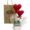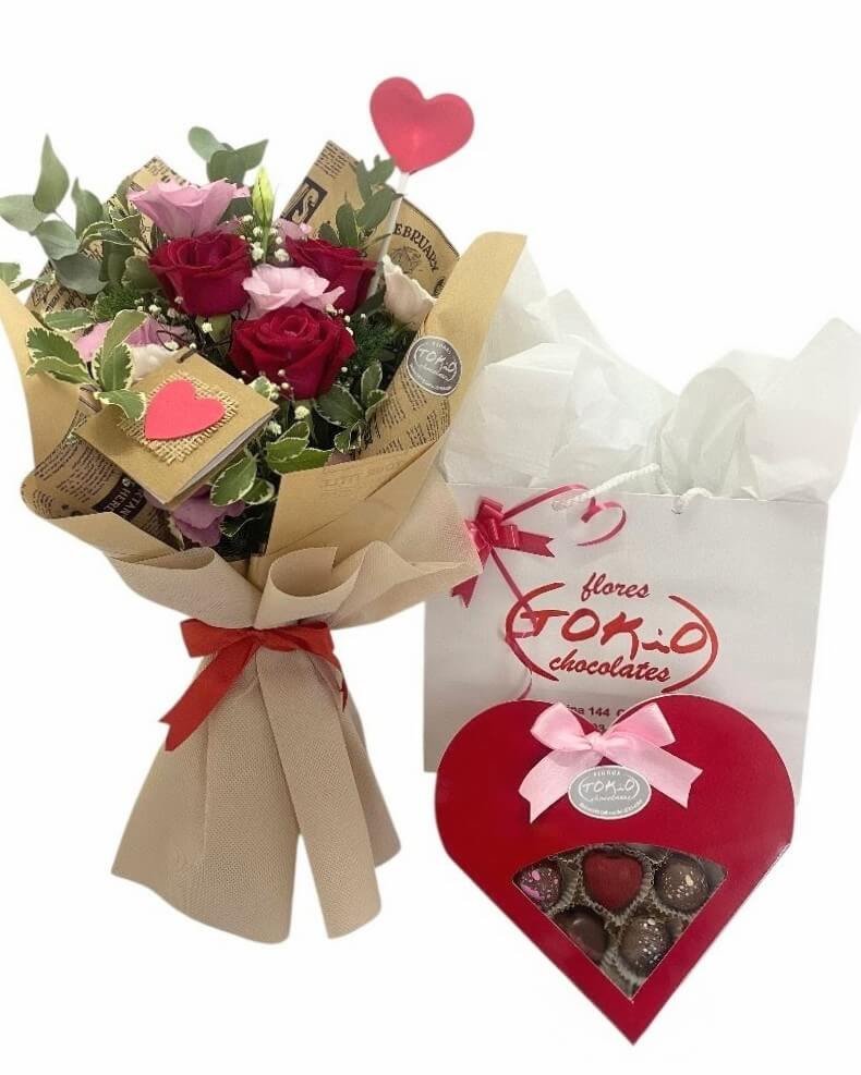 Ramo de 3 rosas nacionales rojas con licianthus rosados y/o blancos según disponibilidad.