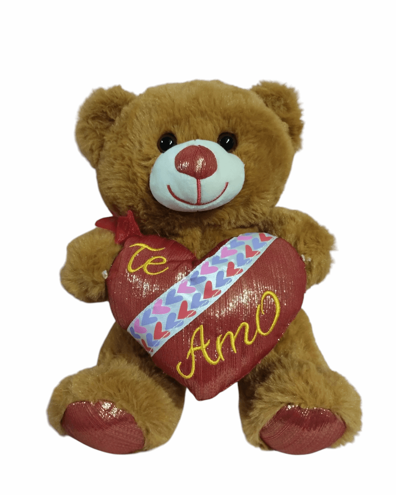 Peluche oso marrón con corazón rojo Te Amo de 24 cm de alto.