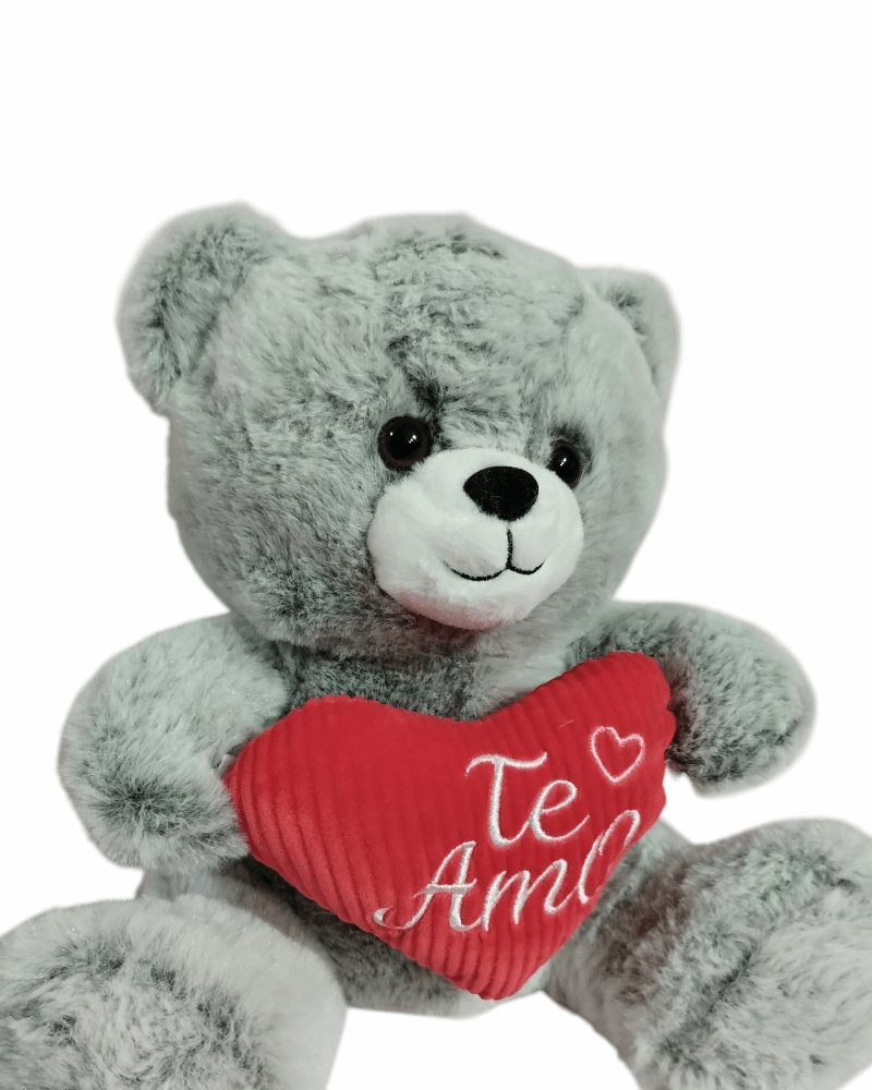 Peluche oso gris con corazón Te Amo de 24 cm de alto.