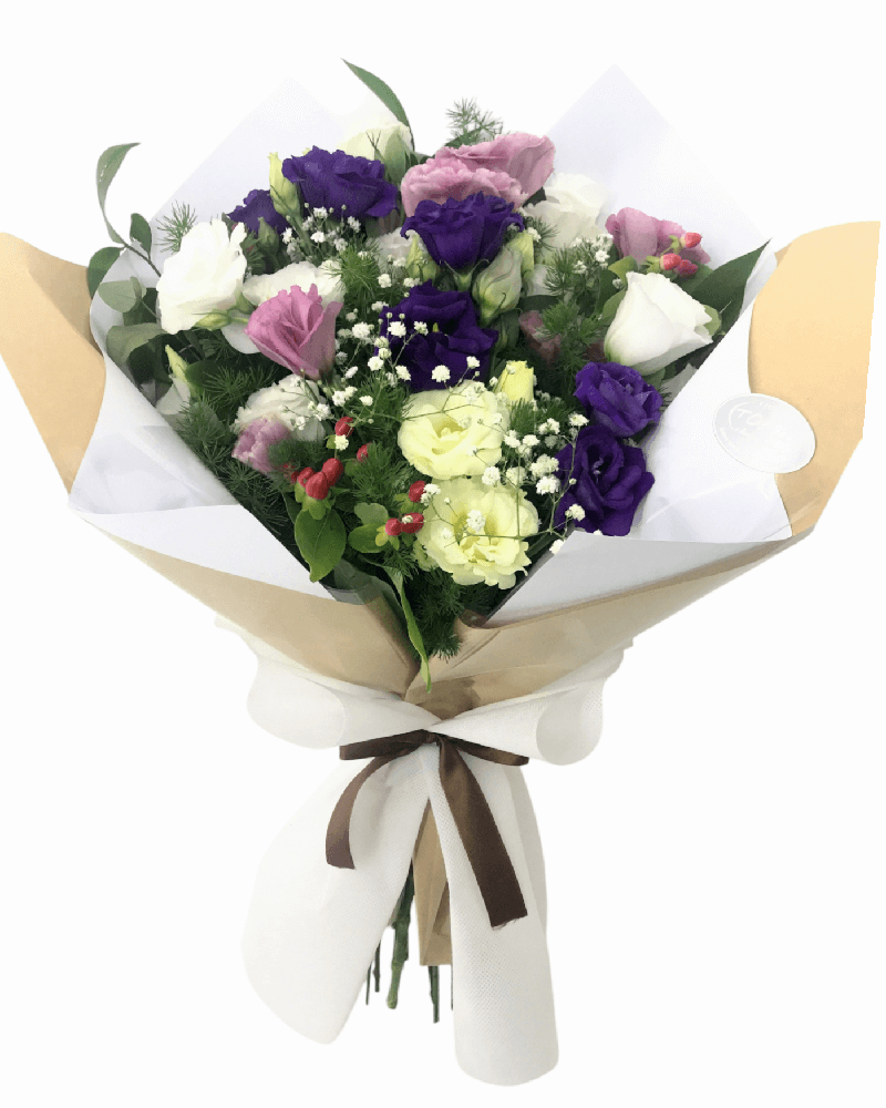 Ramo de delicadas flores como el Lisianthus en su paleta de colores.