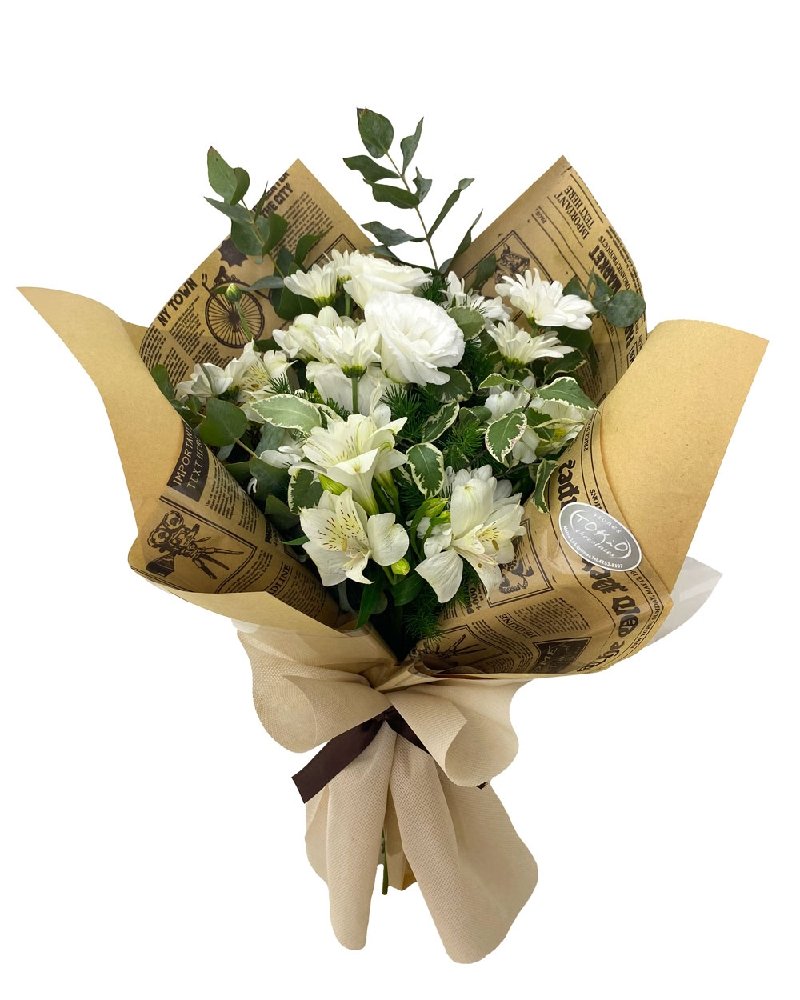 Ramo chico de flores mixtas como astroemerias, margaritas san vicente, licianthus.