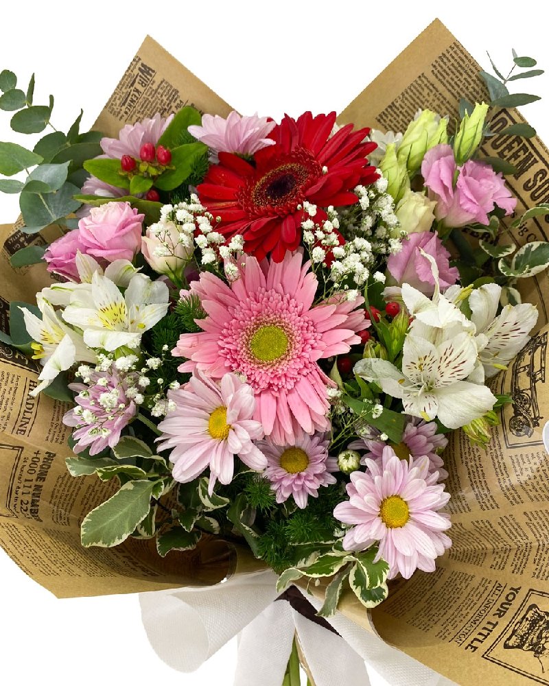 Ramo de flores de estación, gerberas, alstroemerias, san vicente.